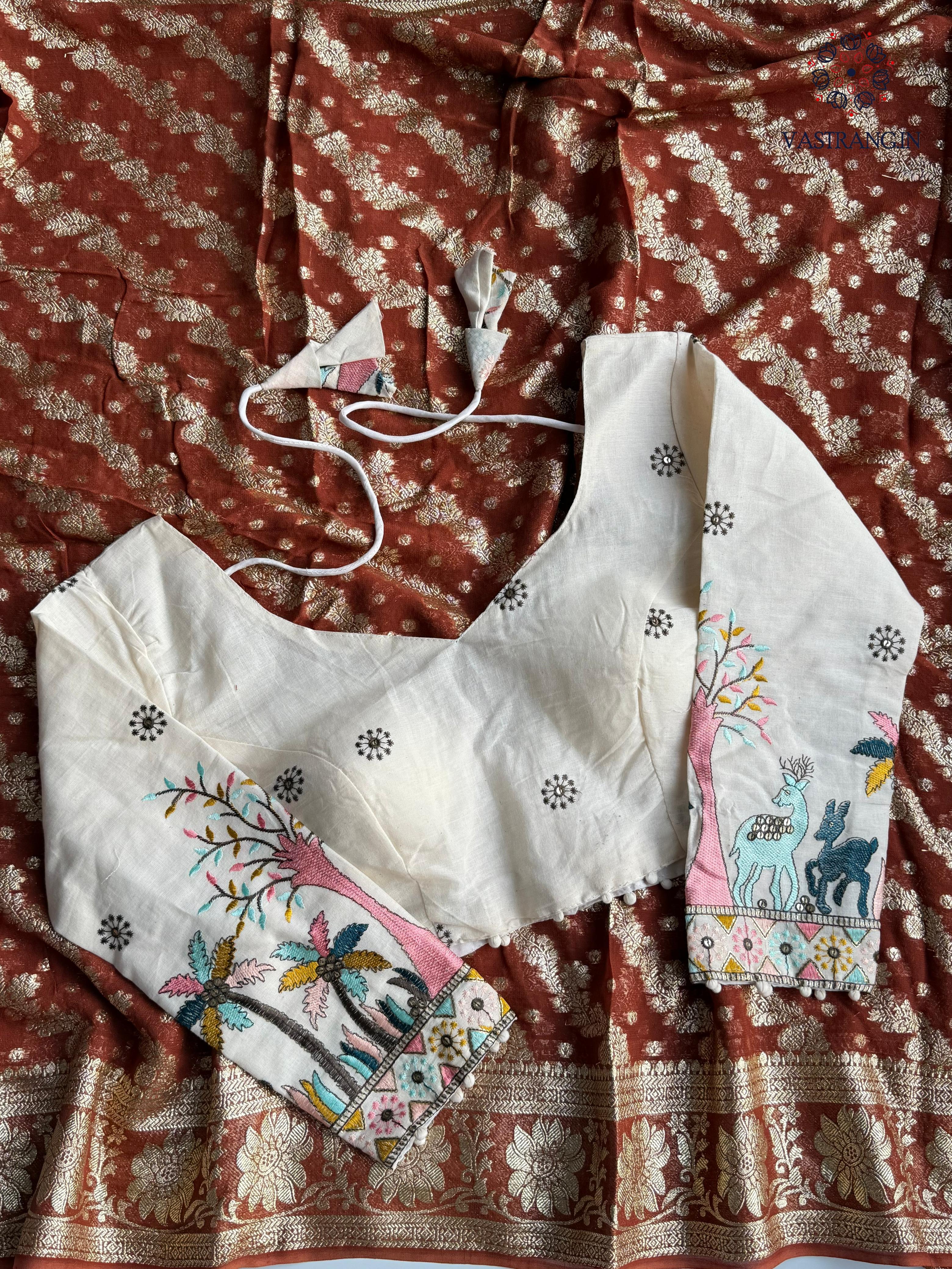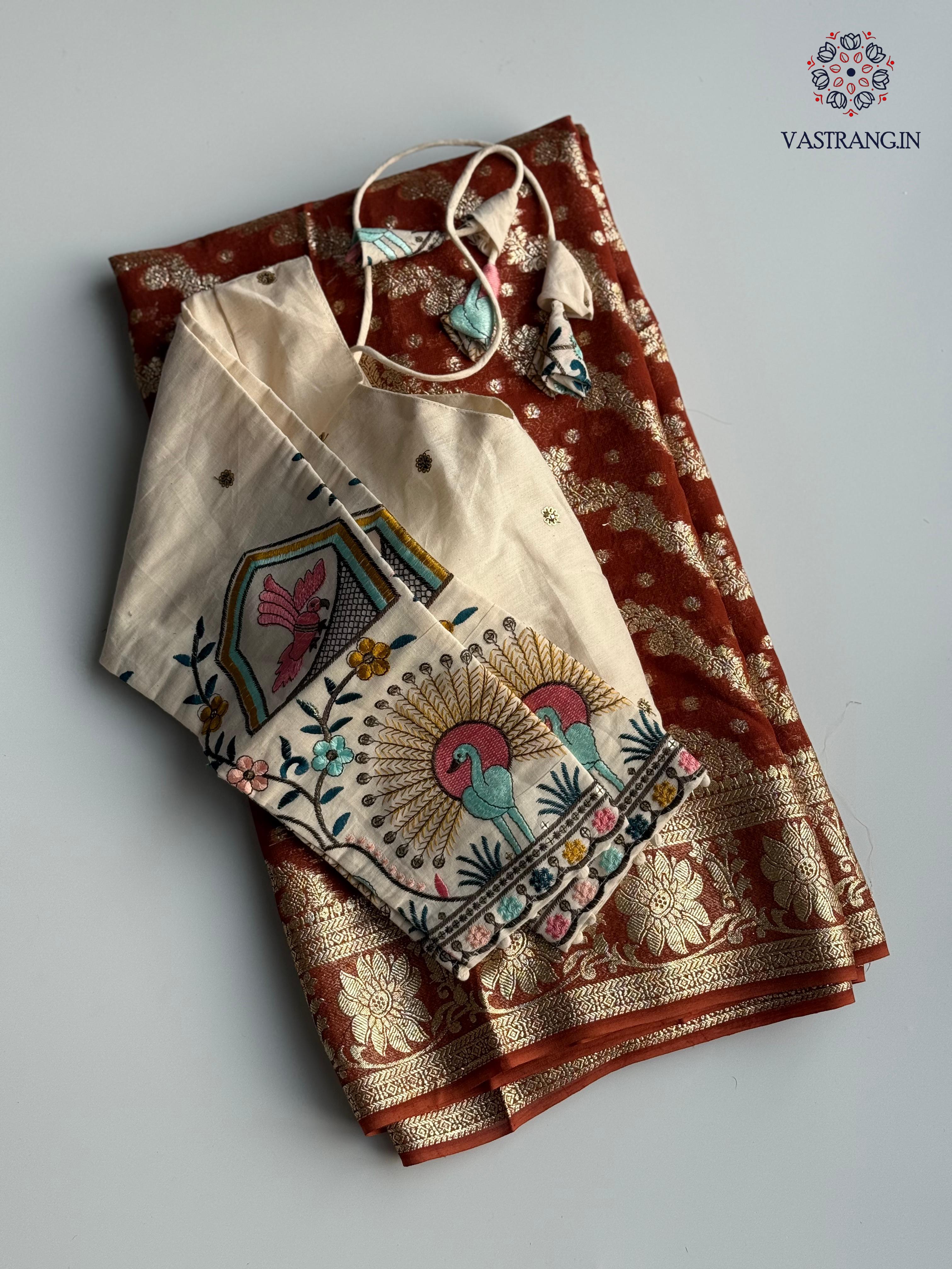 Beautiful Party Wear Viscose Georgette Zari Work Embroidery Stiched Blouse Saree for Ceremonial Occasion