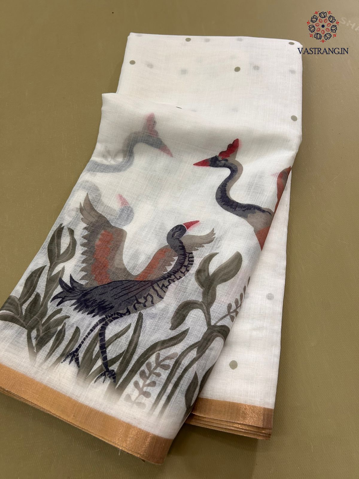 Blossom Party Wear White Colour Soft Cotton Print Fancy Designer Saree