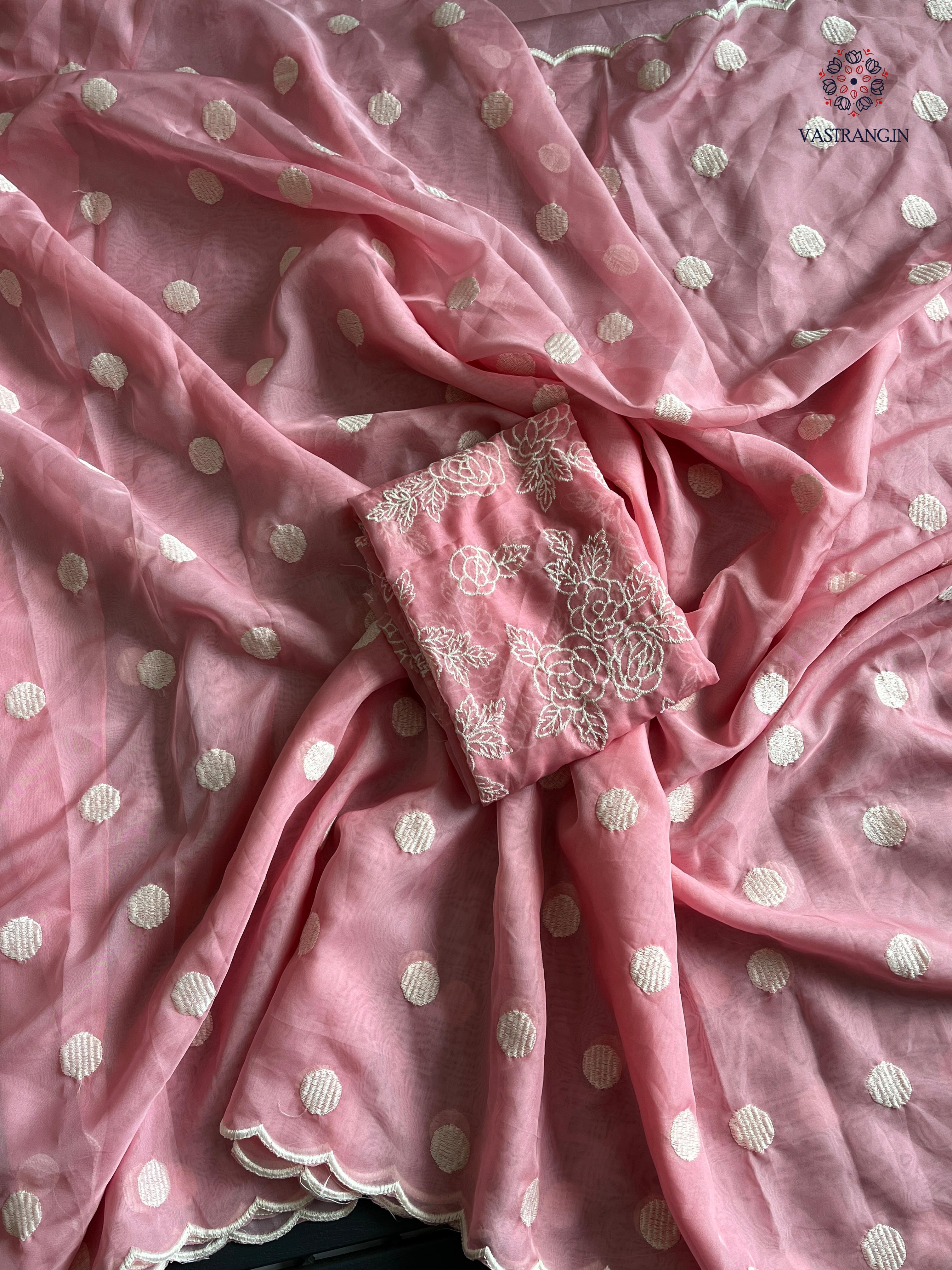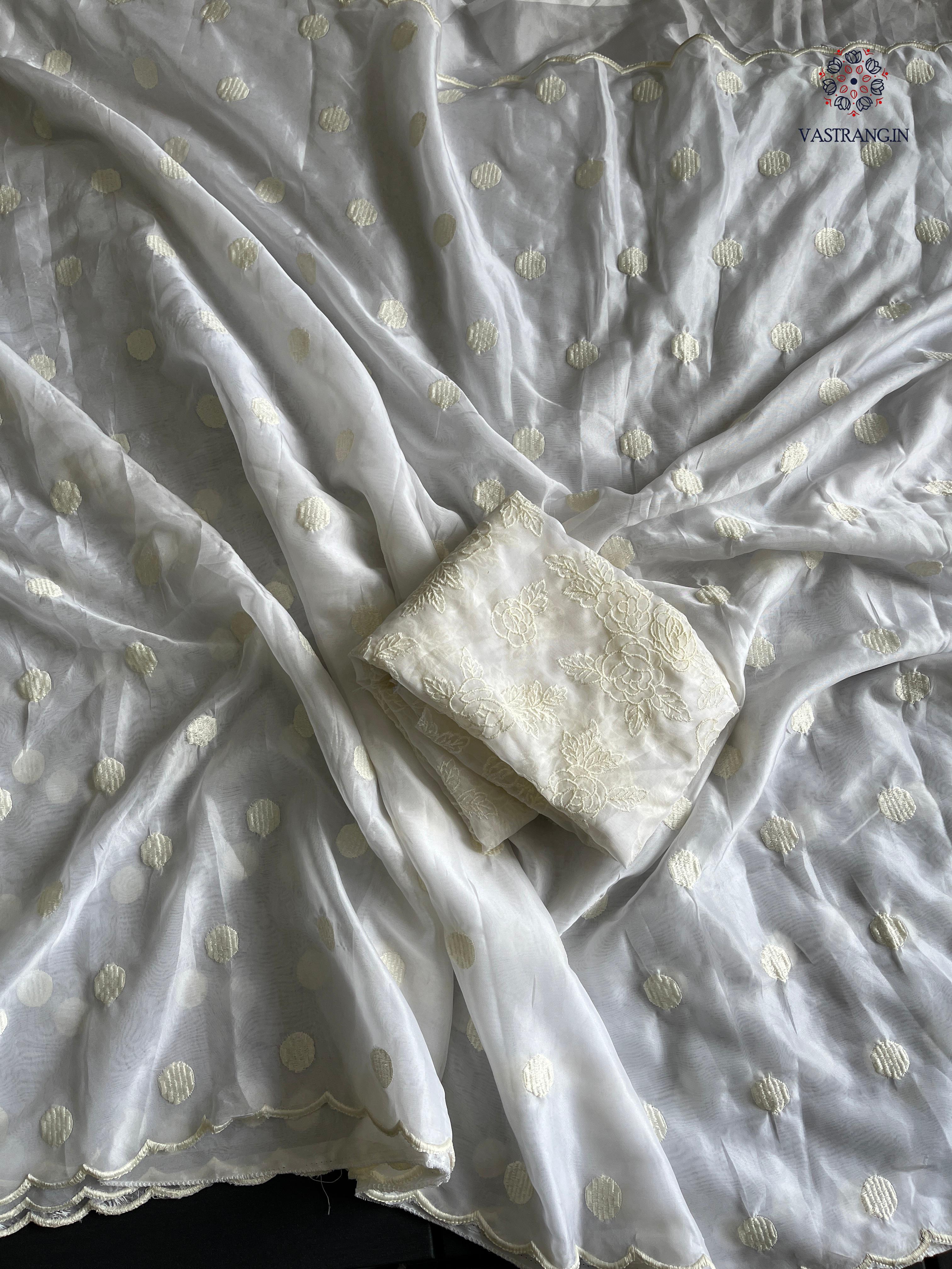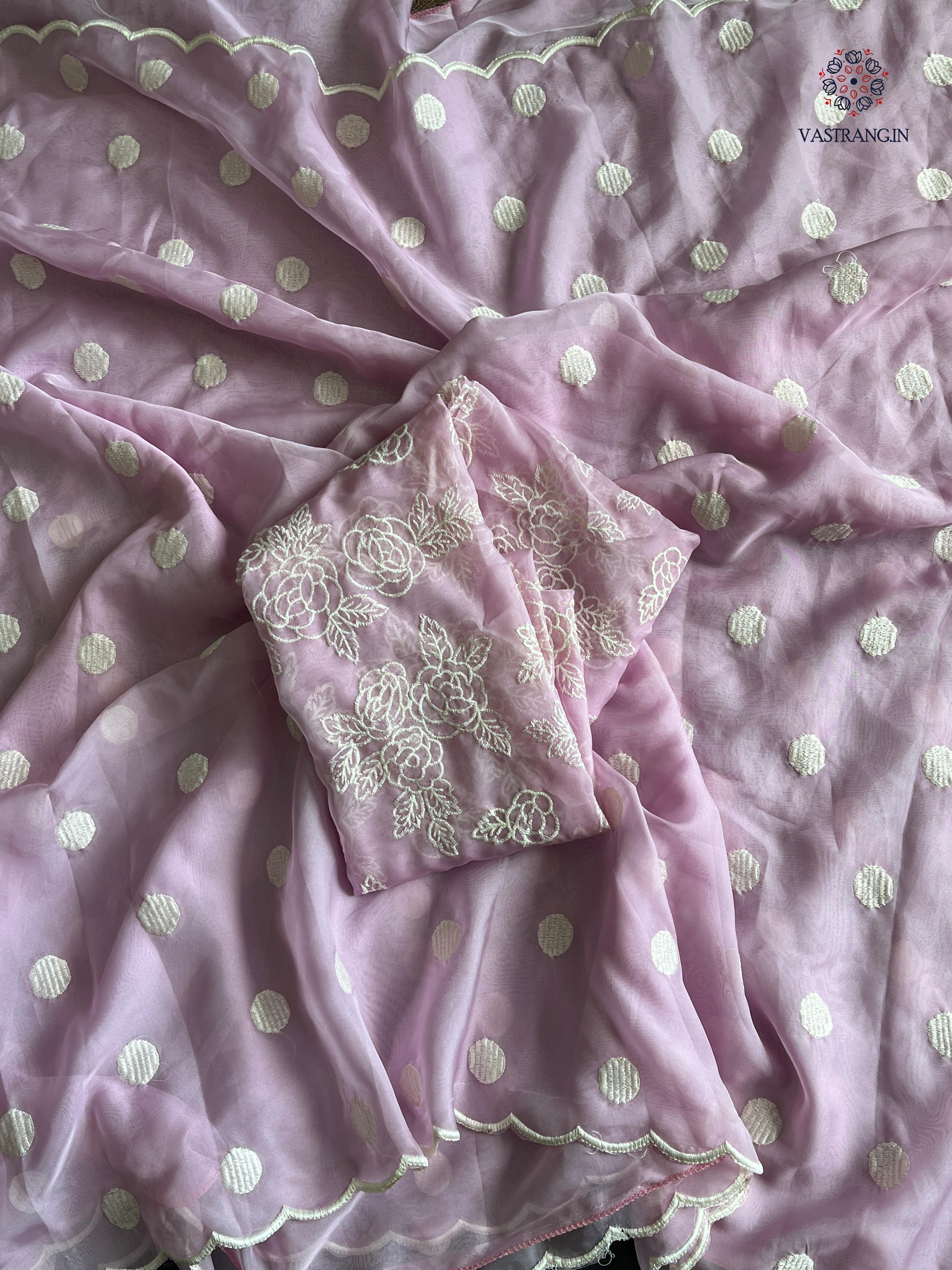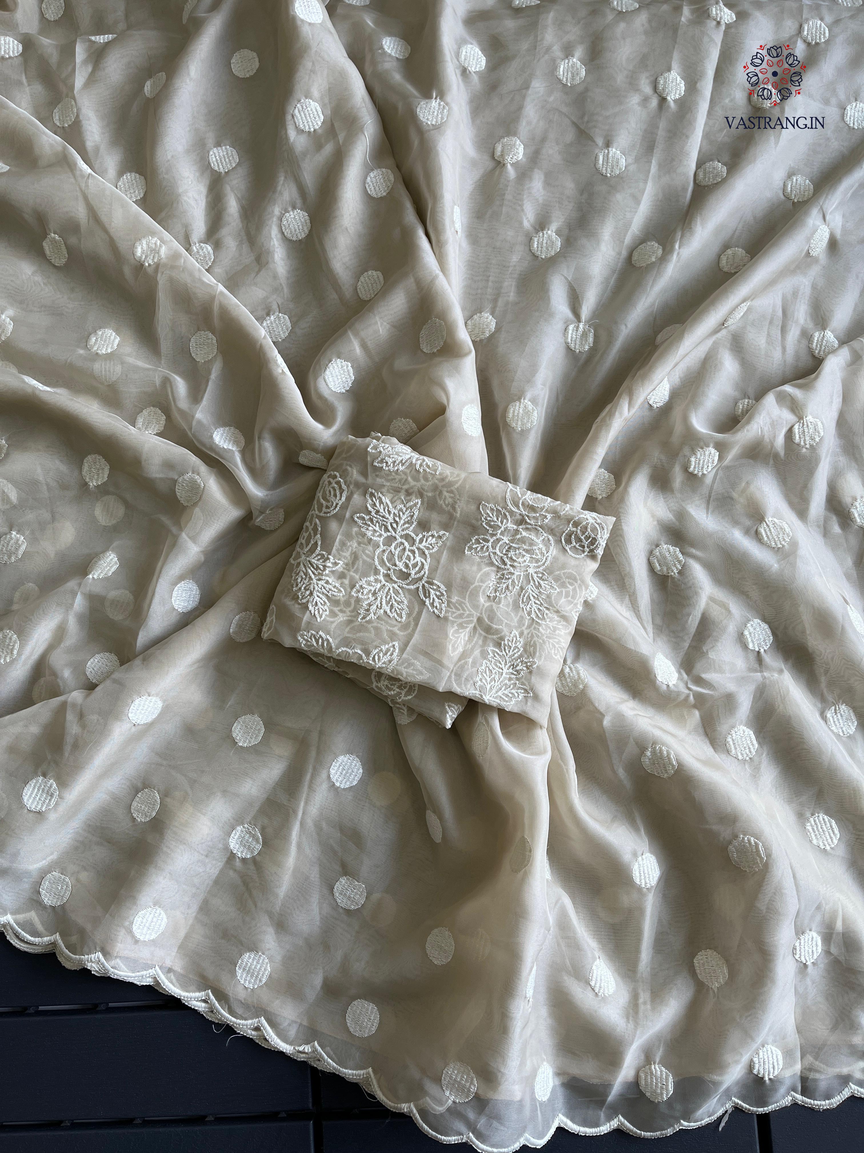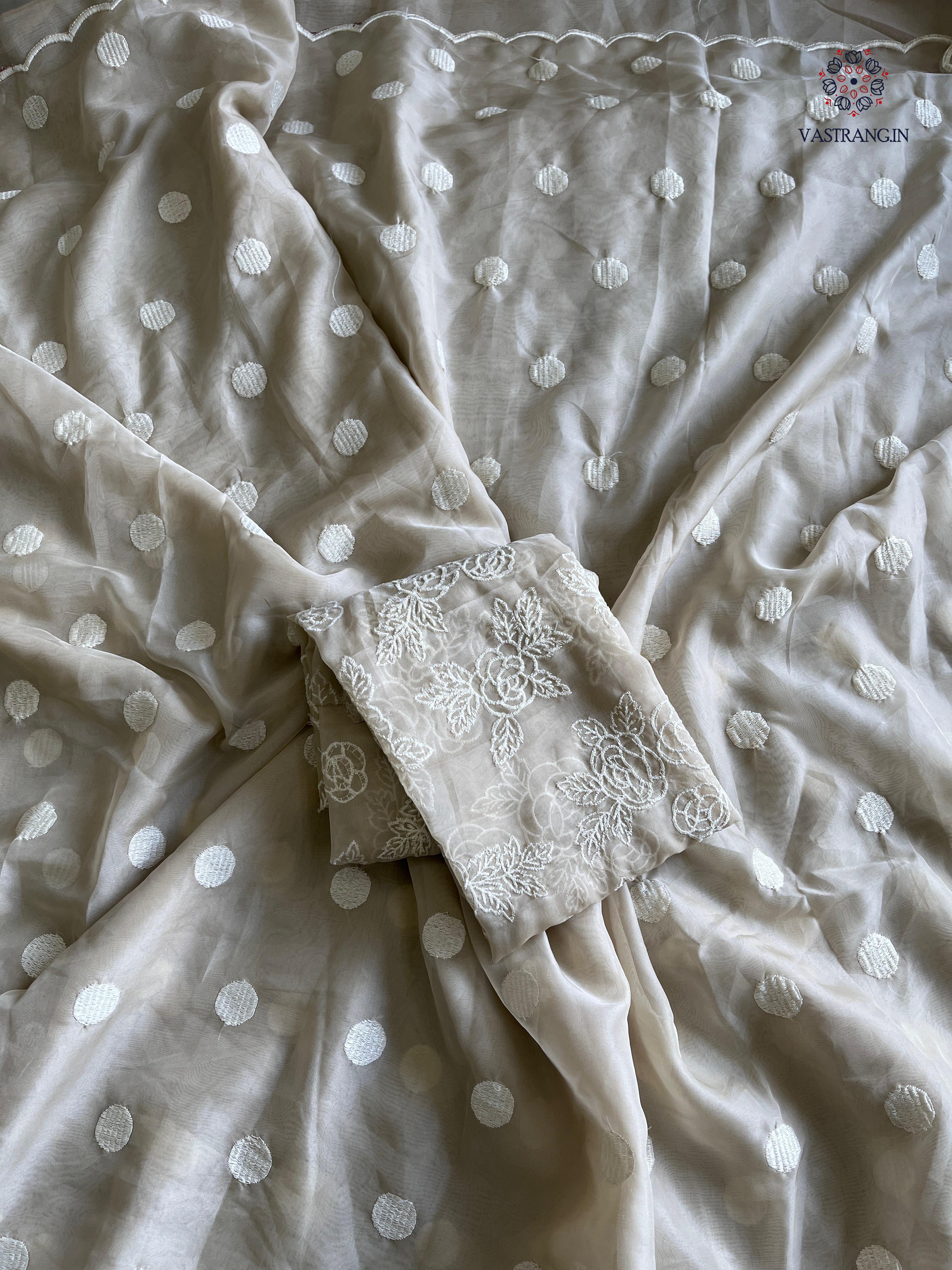 Charming Party Wear Tabi Silk Embroidery Work N Polka Butties Saree With Blouse For Wedding