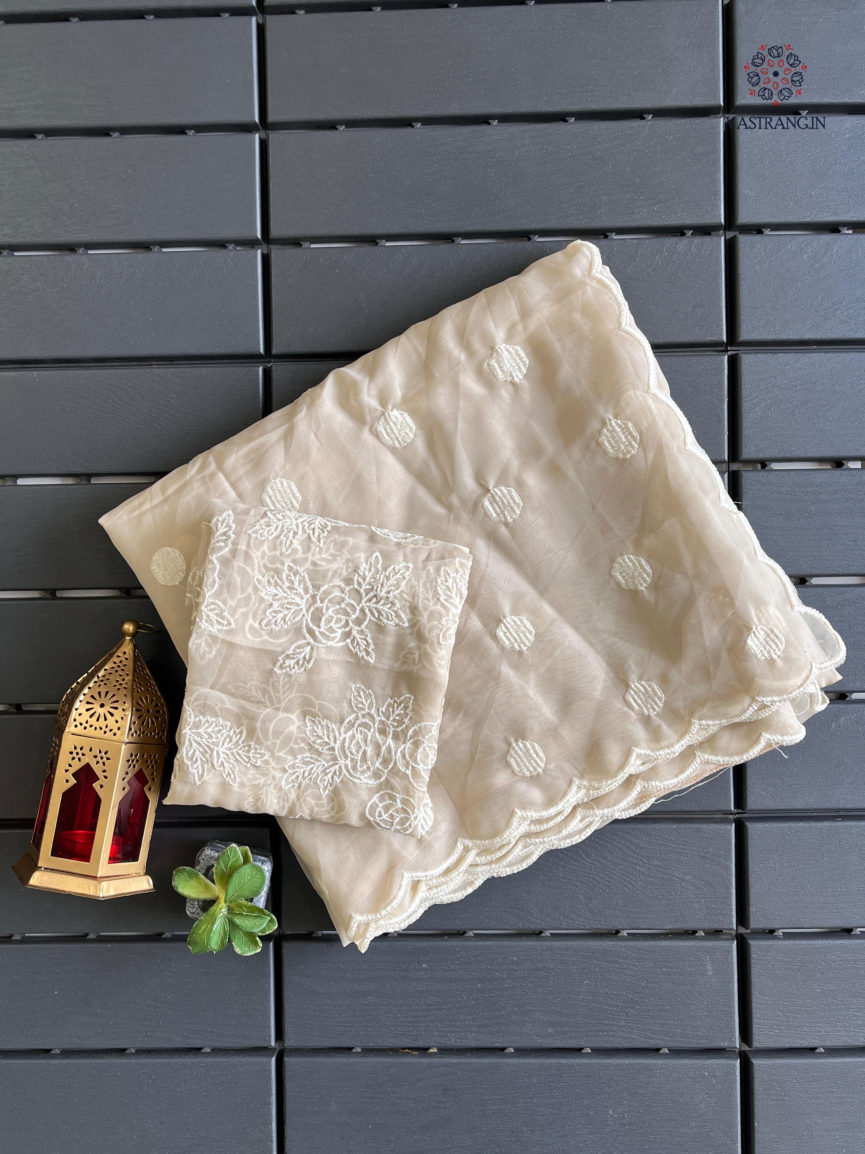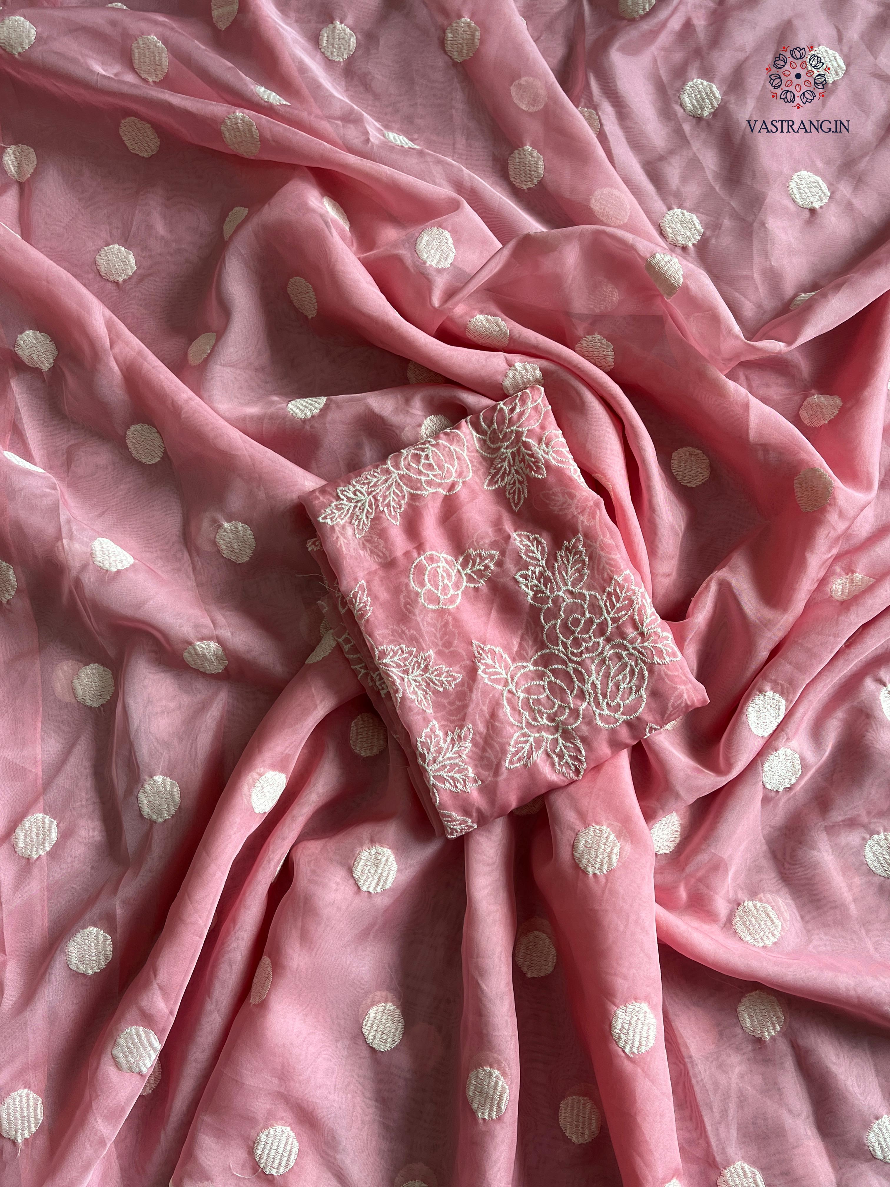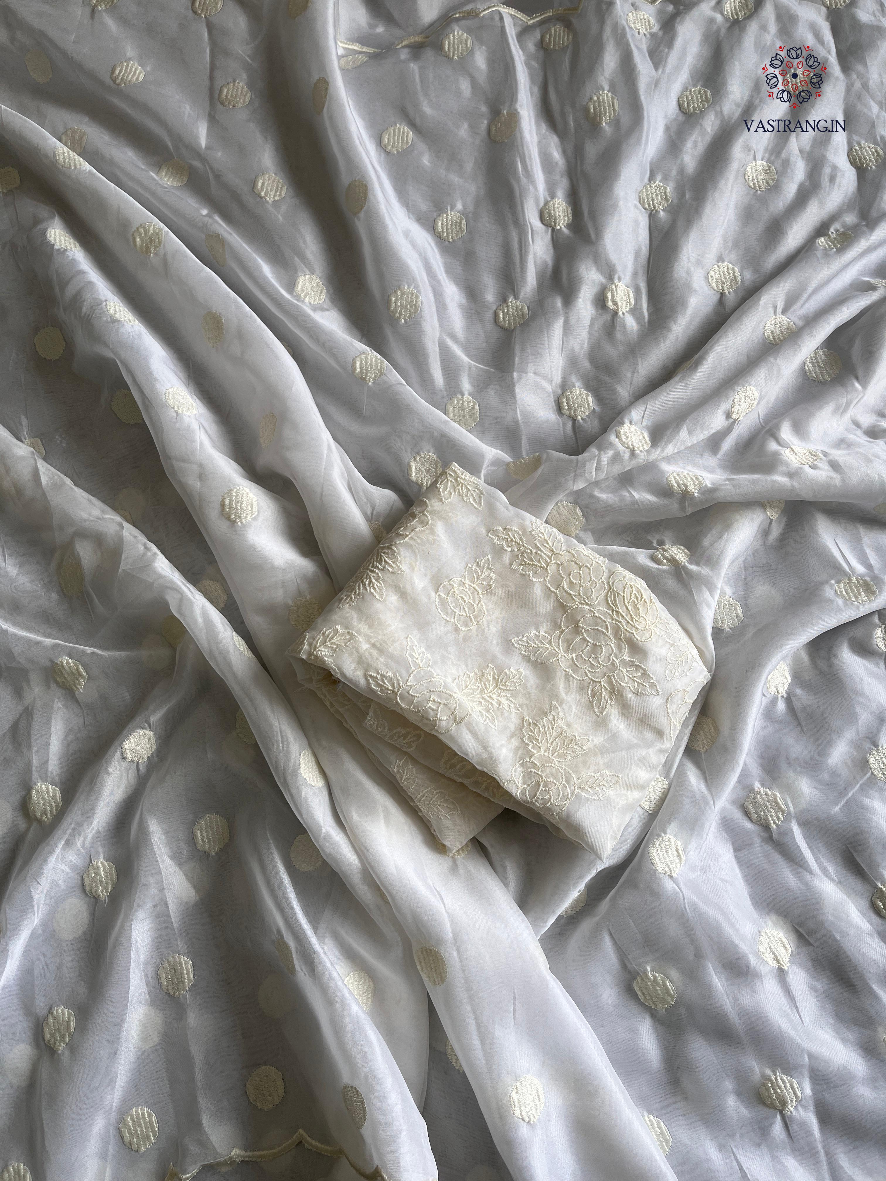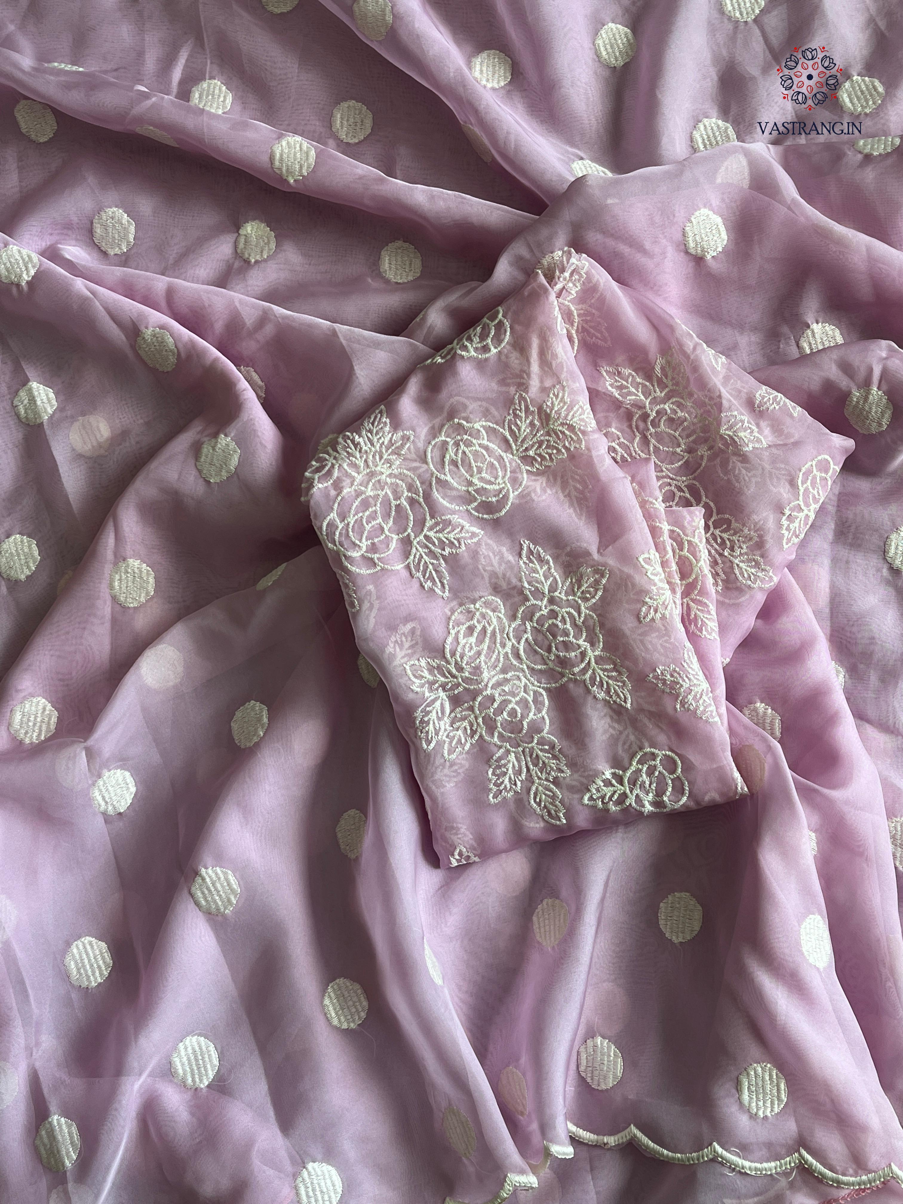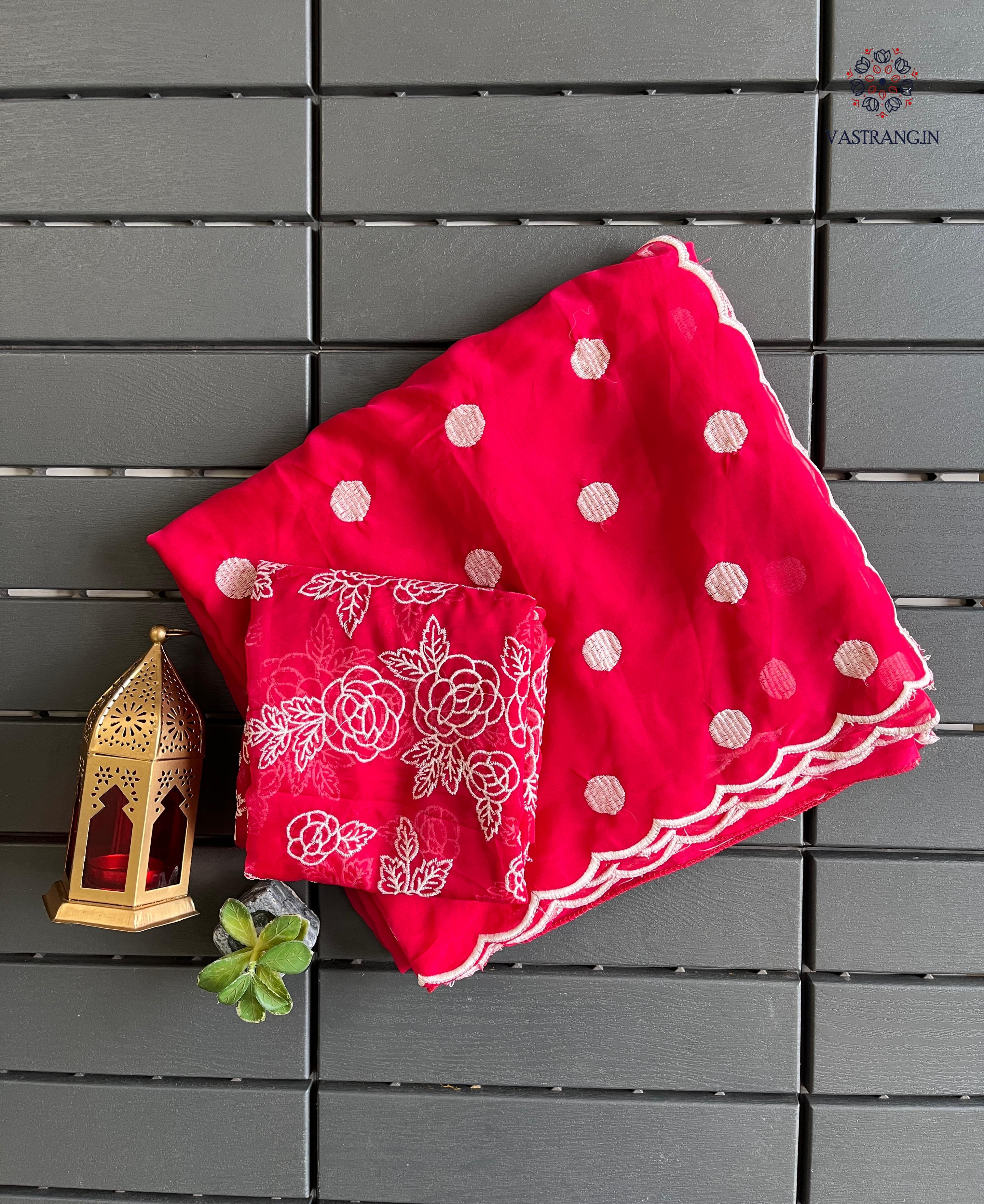 Charming Party Wear Tabi Silk Embroidery Work N Polka Butties Saree With Blouse For Wedding