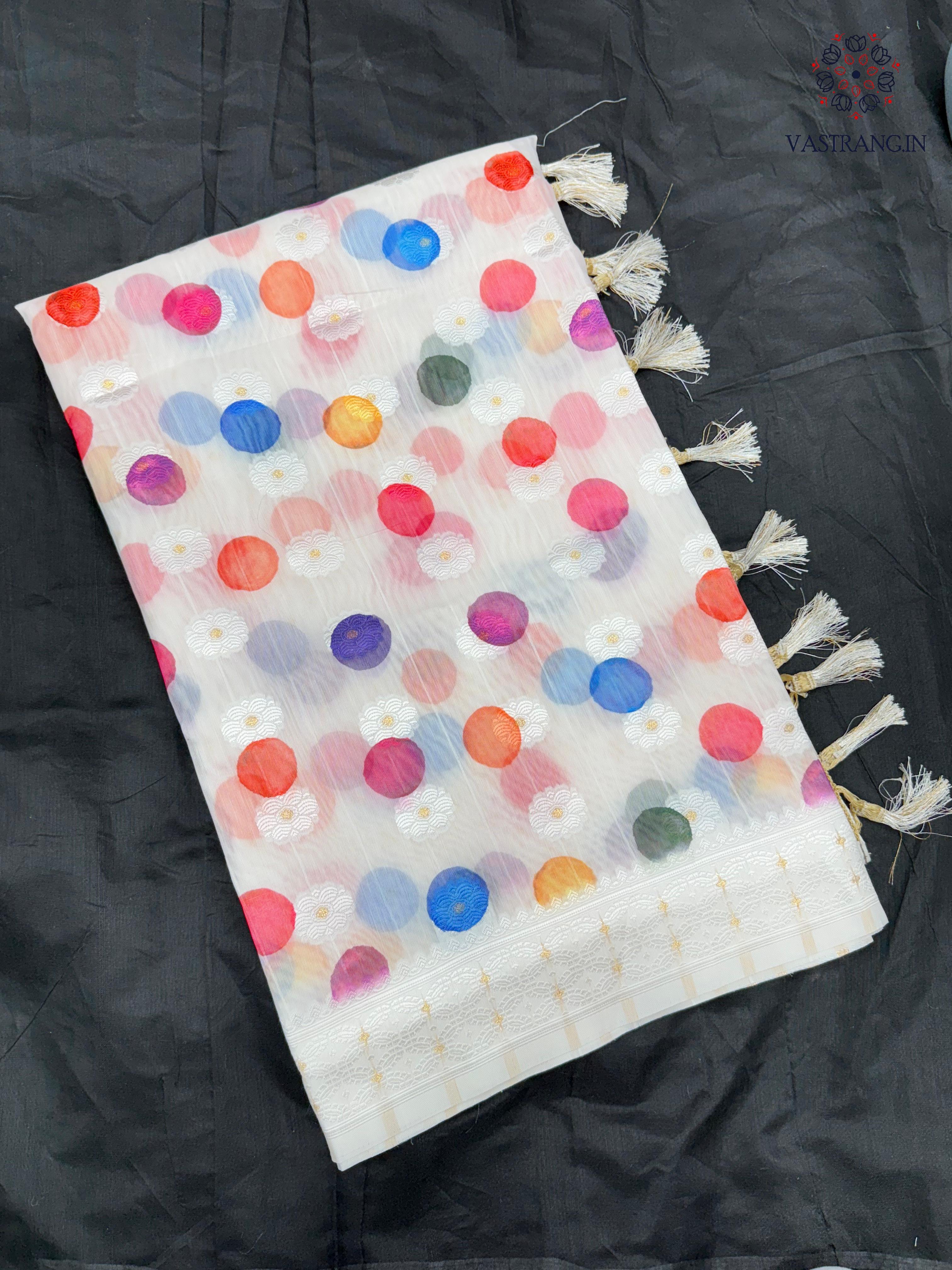 Partywear White Colour Soft Silk Lucknawi Work With Tassels Work Fancy Designer Saree