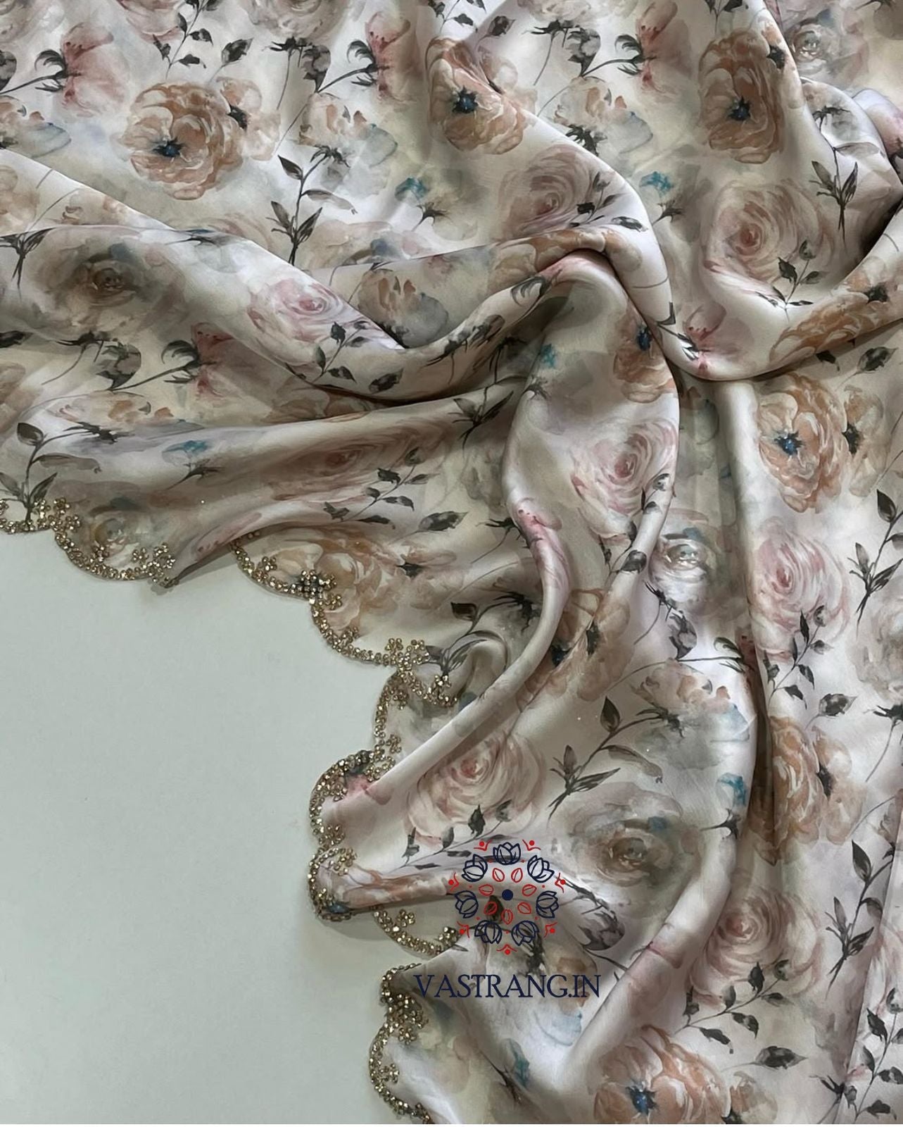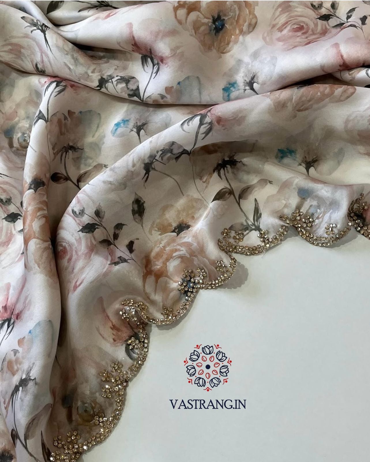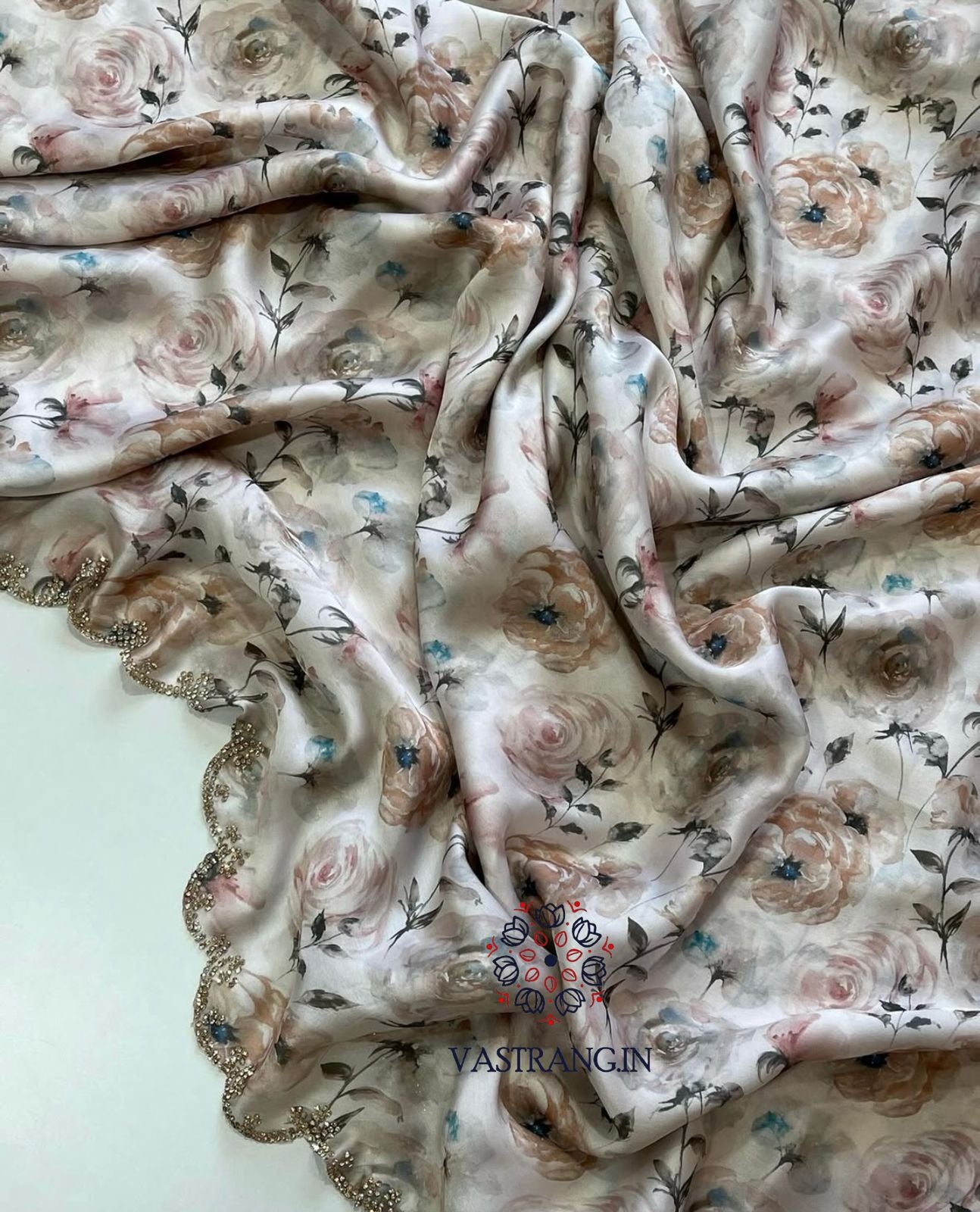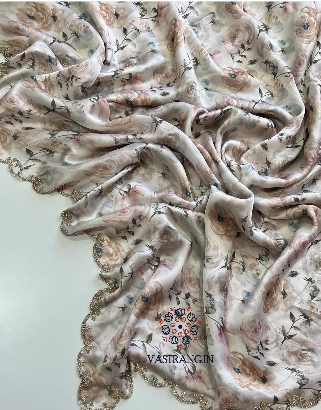 Pure Satin Georgette Multicolor Print n Diamond Cut Work Fancy Designer Partywear Saree Design