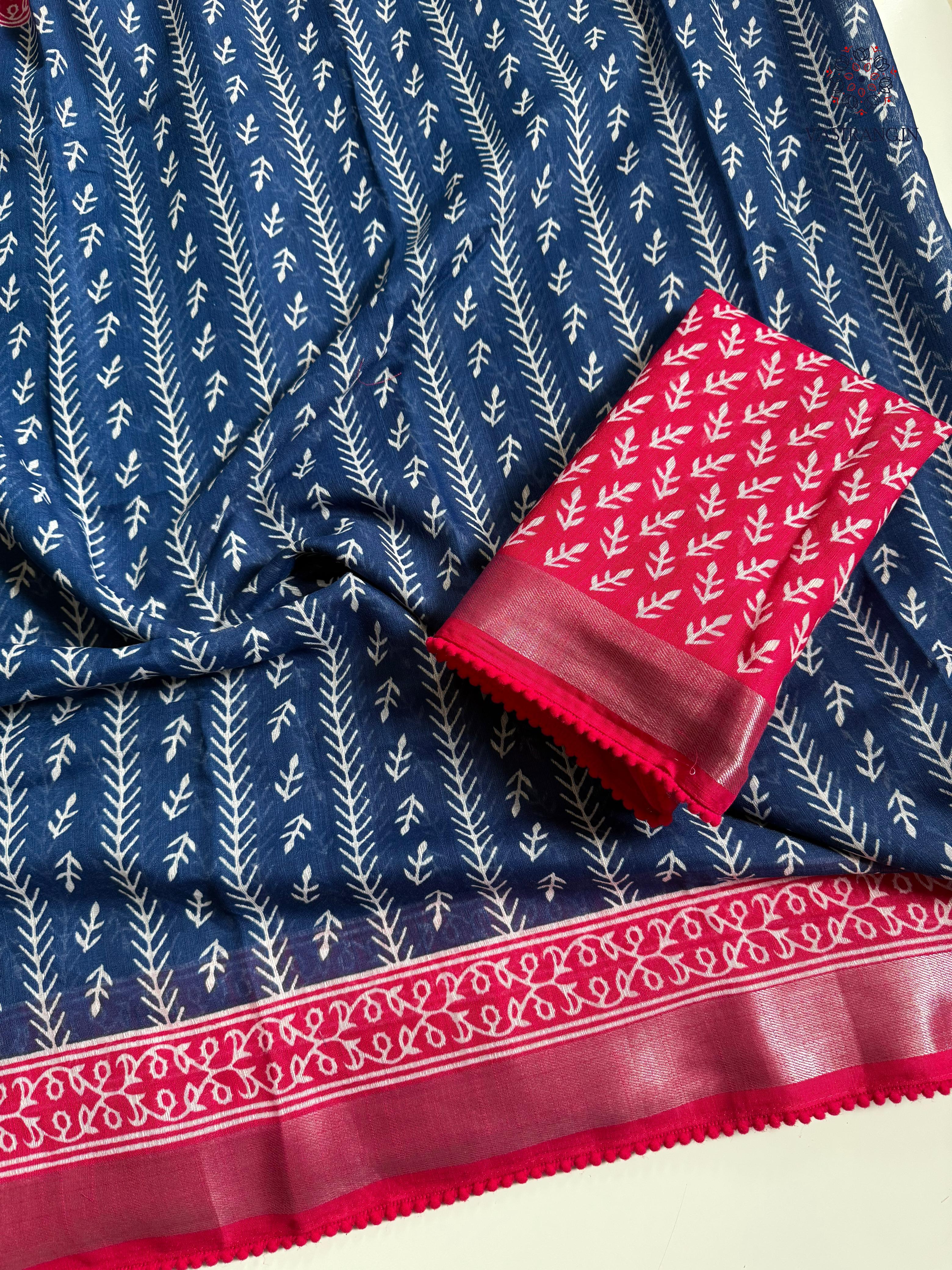 Sempiternal Kota Fabric Print n Zari Weaving Work Fancy Designer Saree With Blouse Piece