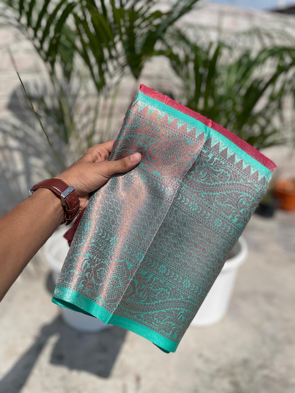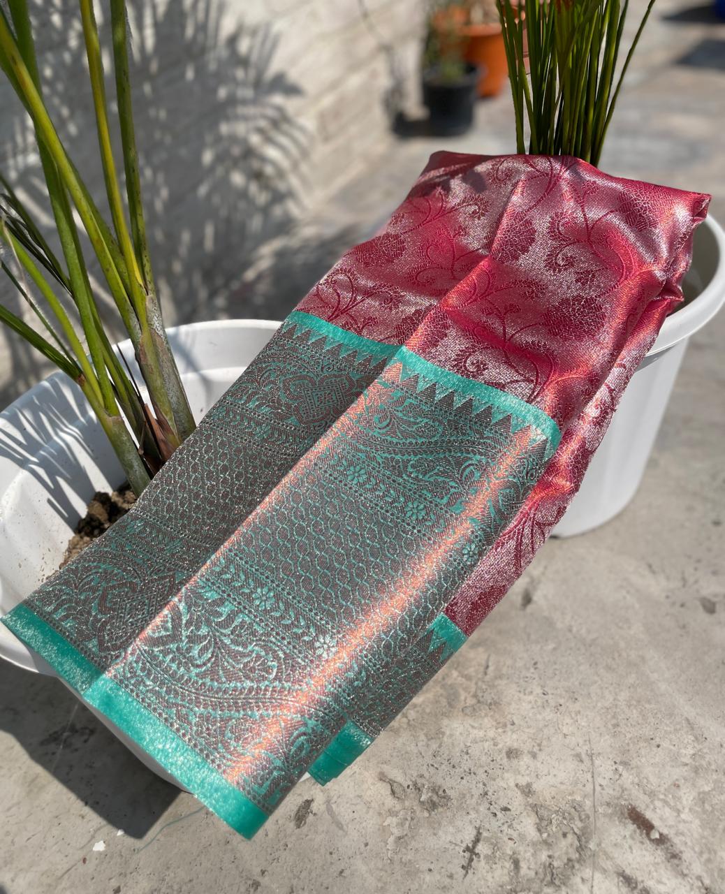 Wedding wear Pink Color Banarasi TIssue Silk Jacquard Weaving Work Fancy Designer Saree With Blouse